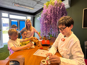 Iedereen mag zijn of haar eigen taartcakeje versieren met kleurrijke toppings. Daarna natuurlijk lekker opeten.